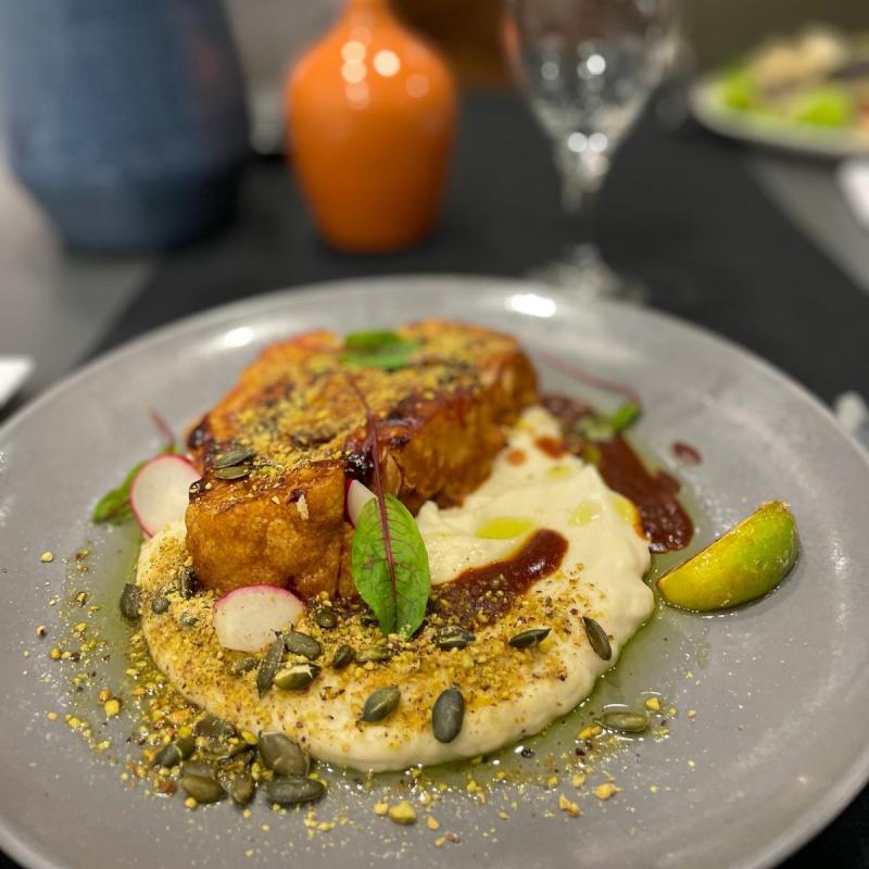 Sous vide, zapiekany w sosie barbecue, podany na puree